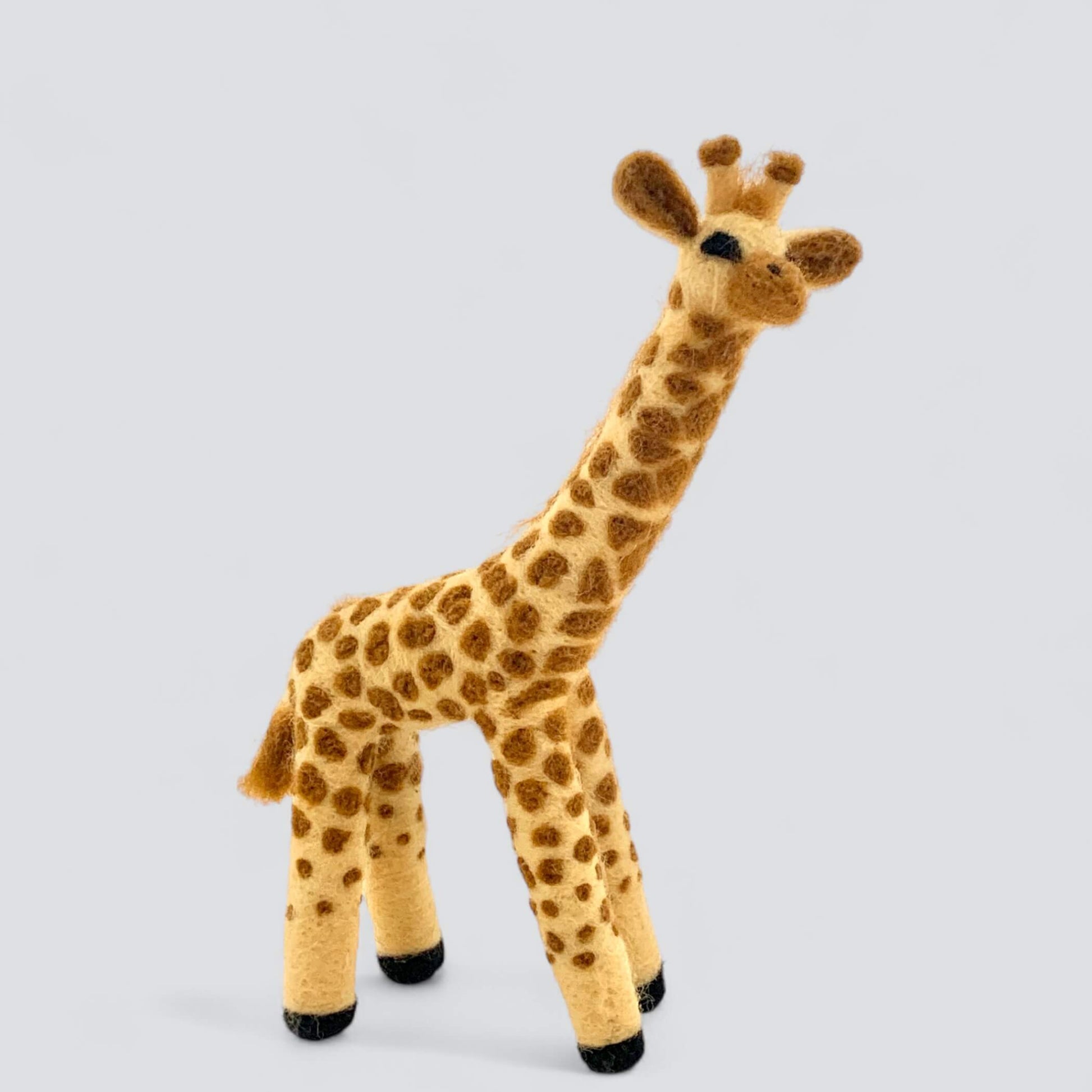 Created by Beth Rosenberg this needle felted giraffe is a soft sculpture animal made without any wires or armatures. Made from 100% New Zealand Corriedale wool in its raw and dyed. It measures approx.